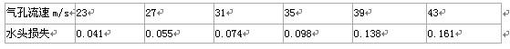 4、單純用氣反沖洗時濾頭的氣壓損失不大于下表值。
