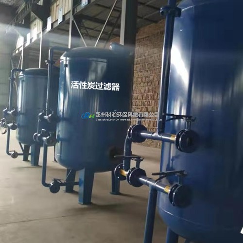 活性炭過濾器是利用活性炭顆粒進一步去除機械過濾器出水中的殘存的余氯、有機物、懸浮物的雜質,為后續的反滲透處理提供良好條件。活性炭過濾器主要利用含碳量高、分子量大、比表面積大的活性炭有機絮凝體對水中雜質進行物理吸附,達到水質要求,當水流通過活性炭的孔隙時,各種懸浮顆粒、有機物等被吸附在活性炭孔隙中;同時,吸附于活性炭表面的氯(次氯酸)在炭表面發生化學反應,被還原成氯離子,從而有效地去除了氯,確保出水余氯量小于0.1ppm,滿足RO膜的運行條件。隨時間推移活性炭的孔隙內和顆粒之間的截留物逐漸增加,使濾器的前后壓差隨之升高,直至失效。在通常情況下,根據過濾器的前后壓差,利用逆向水流反洗濾料,使大部分吸附于活性炭孔隙中的截留物剝離并被水流帶走,恢復吸附功能;當活性炭達到飽和吸附容量徹底失效時,應對活性炭再生或更換活性炭,以滿足工程要求。當活性碳過濾器因截留過量的機械雜質而影響其正常工作,則可用反沖洗的方法來進行清洗。利用逆向進水,使過濾器內砂濾層松動,可使粘附于濾料表面的截留物剝離并被反沖水流帶走,有利于排除濾層中的沉渣、懸浮物等,并防止濾料板結,使其充分恢復截污、除氯能力,從而達到清洗的目的。反洗以進出口壓差參數設置來控制反沖洗周期,一般為三至四天,具體須視原水濁度而定。活性碳過濾器采用不銹鋼操作閥組,過濾器的啟運、正洗、反洗、停機等工序均有手動控制操作。當活性碳過濾器運行至進出口壓差為0.05~0.07MPa時,必須進行反洗?;钚蕴几鼡Q期為半年至一年。